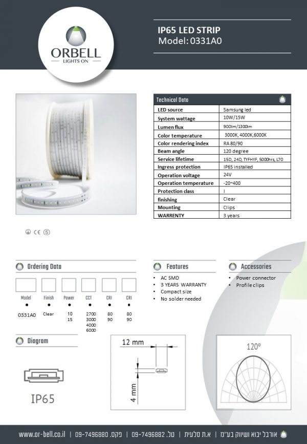 • לדים למטר: 120
