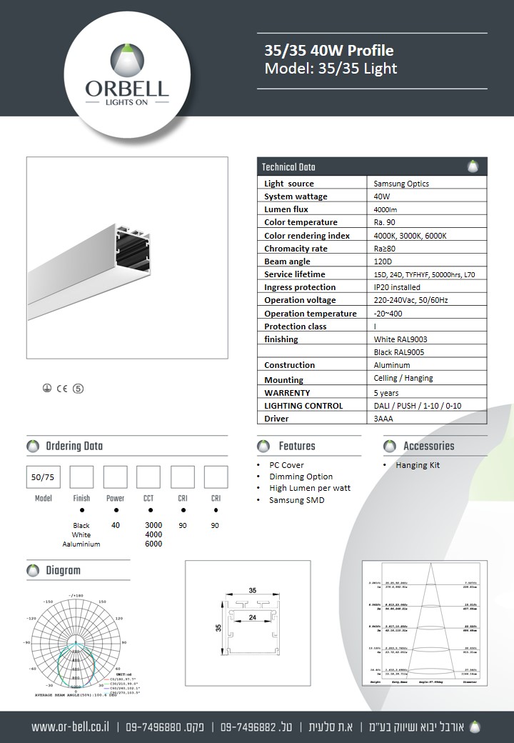 - צבע גוף: שחור / לבן / אנודיז / RAL