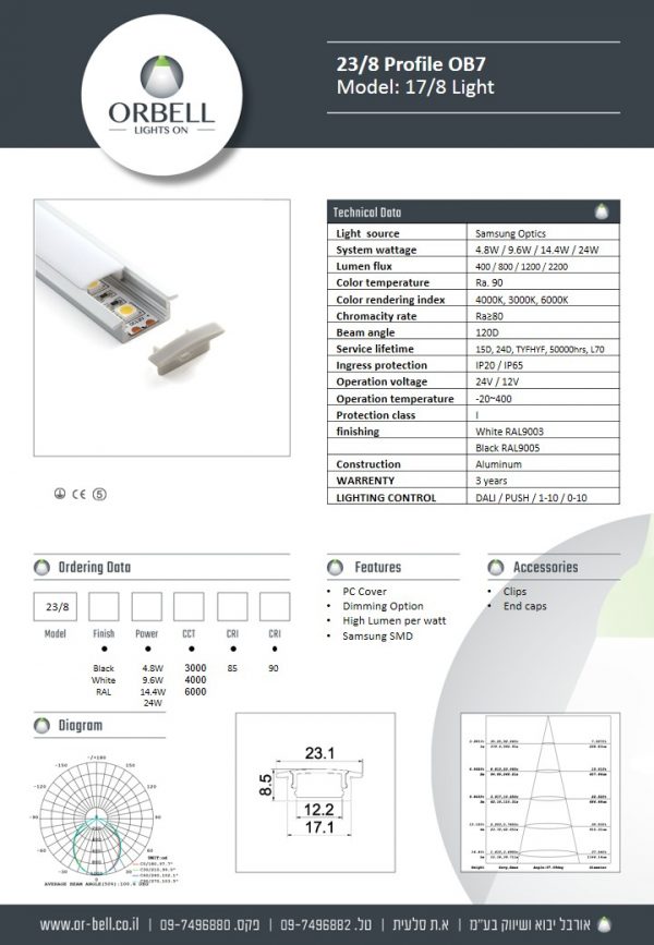 פרופיל OB7 שקוע מחווט דגם 23/8